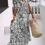 Giv dit look en kunstnerisk og elegant note med Nadin | Abstrakt maxikjole med V-udskæring. Bestil nu og nyd din særlige anledning stilfuldt!