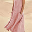 Yasmi | Locker Skåret Ærmeløs Lænderkjole forener naturlig komfort med en afslappet, moderne stil. Med sin løse pasform og det åndbare læderstof er denne kjole ideel til varme sommerdage, strandferier eller bare til et elegant, men behageligt hverdagslook.